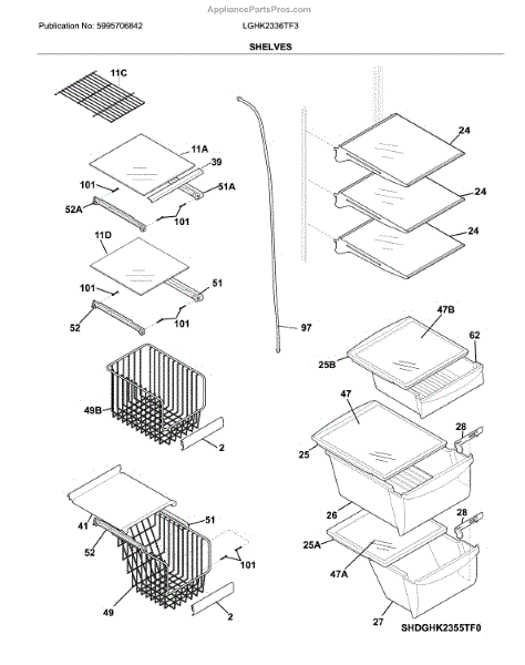 *GLASS NOT INCLUDED, GLASS IS PART # 240350603 / AP2115927*