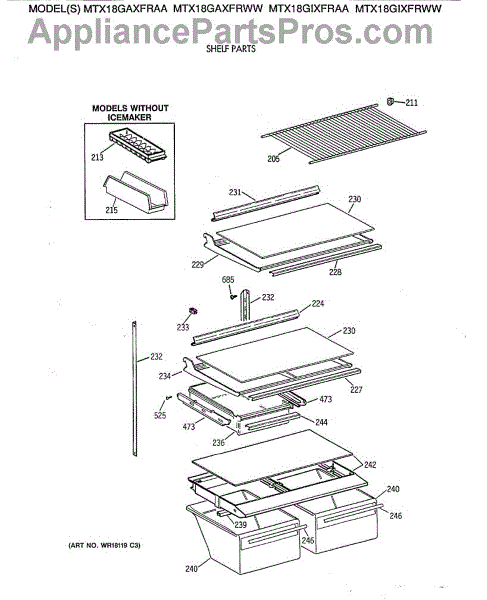 Parts for Ge MTX18GAXFRWW: 04 - Shelf Parts