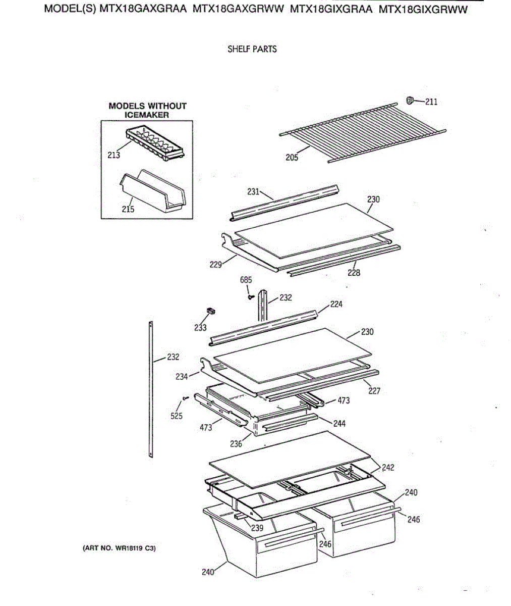 Parts for Ge MTX18GIXGRAA: 04 - Shelf Parts