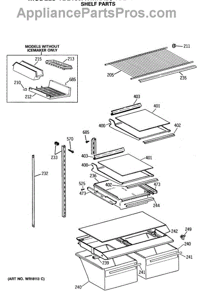 Parts for Ge TBE18JATMRWH: 04 - Shelf Parts