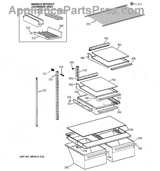 Parts for Ge TBG18JADARWW: 04 - Shelf Parts