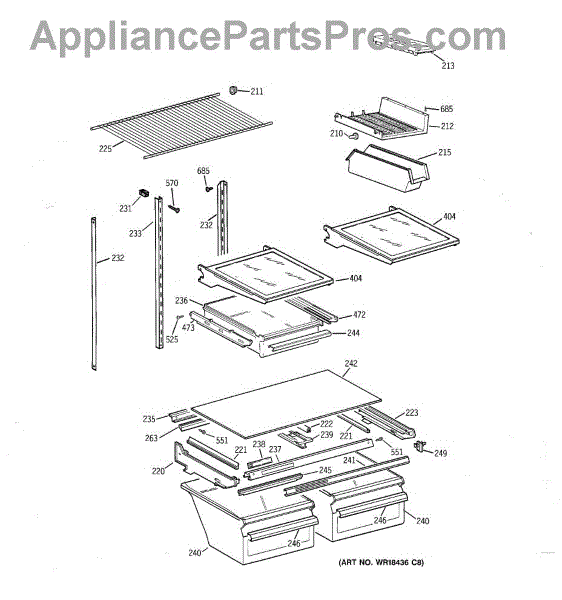 Parts for Ge TBH18JABFRWW: 04 - Shelf Parts