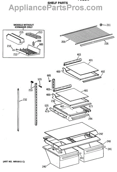 Parts for Ge TBH18JASNRWH: 04 - Shelf Parts
