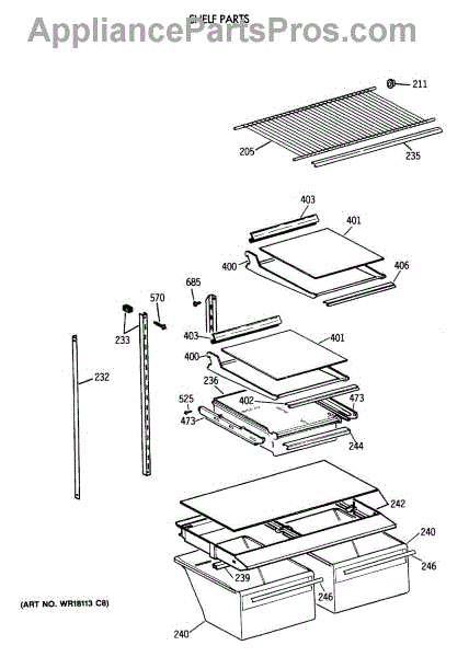 Parts for Ge TBH18JAXBRWW: 04 - Shelf Parts