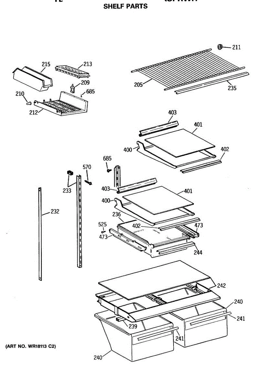 Parts for Ge TBH18MASNRWH: 04 - Shelf Parts
