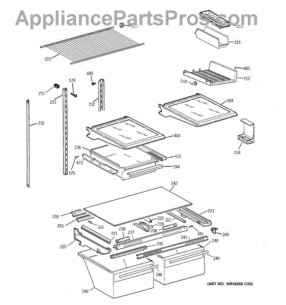 Parts for Ge TBH19ZABNRAA: 04 - Shelf Parts