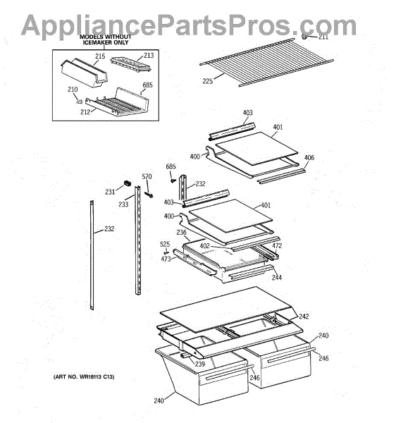 Parts for Ge TBT18JABFRAA: 04 - Shelf Parts