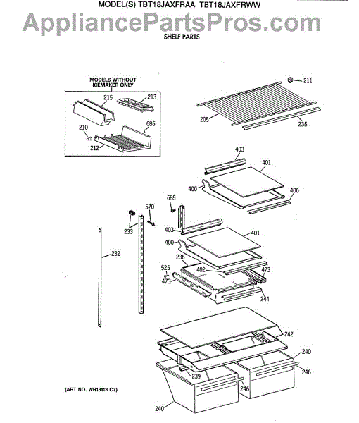 Parts for Ge TBT18JAXFRWW: 04 - Shelf Parts