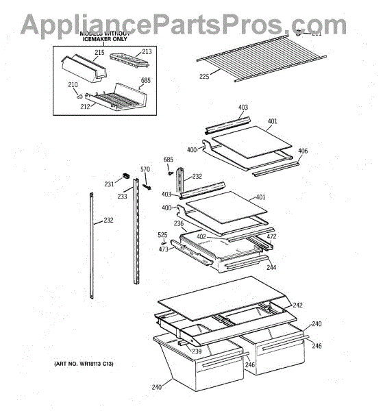 Parts for Ge TBT18JAXURAA: 04 - Shelf Parts