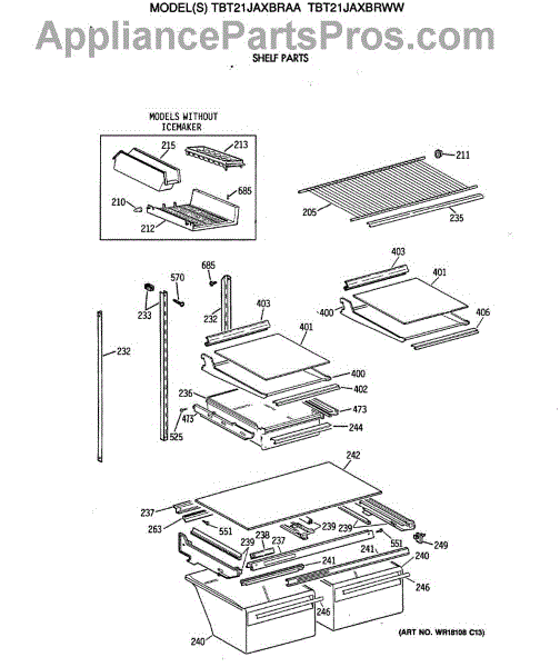 Parts for Ge TBT21JAXBRAA: 04 - Shelf Parts