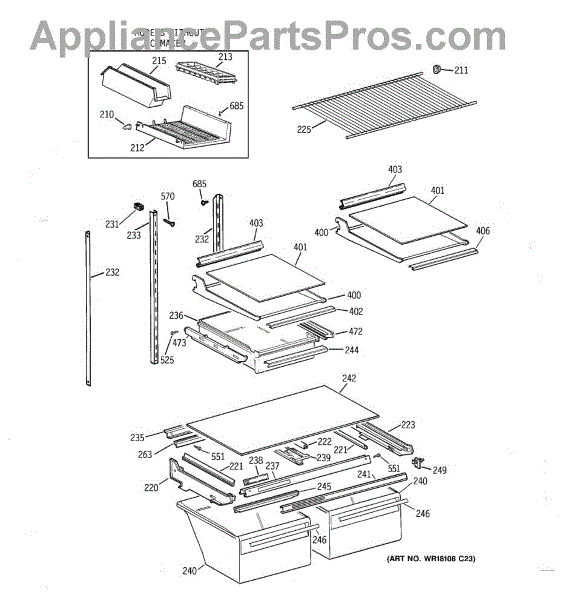 Parts for Ge TBT24JABFRAA: 04 - Shelf Parts