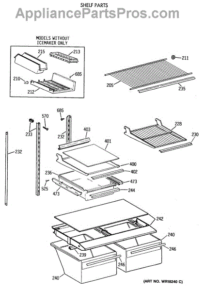 Parts for Ge TBX18DIXBRAA: 04 - Shelf Parts