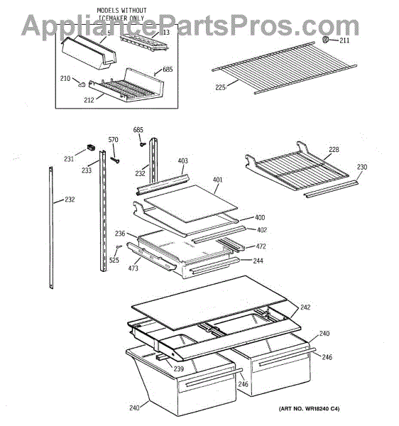 Parts for Ge TBX18DIXNRAA: 04 - Shelf Parts
