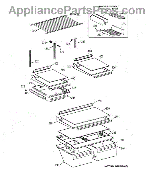 Parts for Ge TBX18IAZLRAA: 04 - Shelf Parts