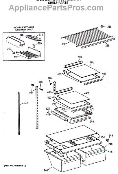 Parts for Ge TBX18JASERHA: 04 - Shelf Parts