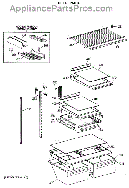 Parts for Ge TBX18JASFRAD: 04 - Shelf Parts