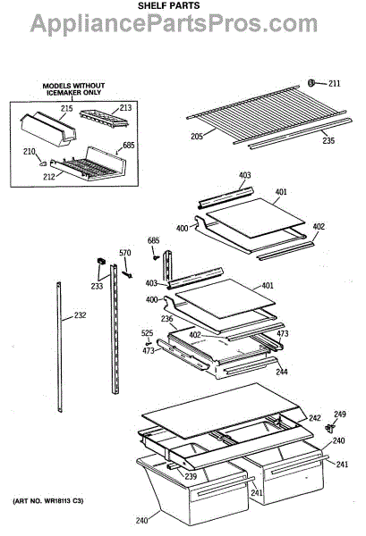 Parts for Ge TBX18JATHRWH: 04 - Shelf Parts