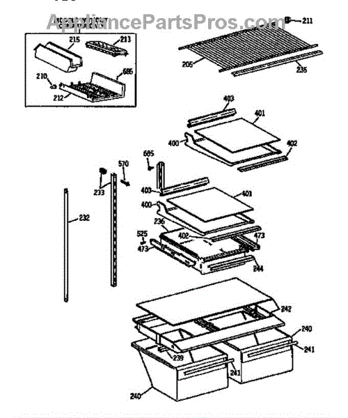 Parts for Ge TBX18JATJRAD: Shelf Parts
