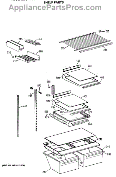 Parts for Ge TBX18MASARWH: 04 - Shelf Parts