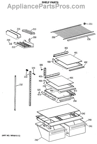 Parts for Ge TBX18MASERWH: 04 - Shelf Parts