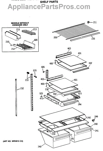 Parts for Ge TBX18MASGRWH: 04 - Shelf Parts