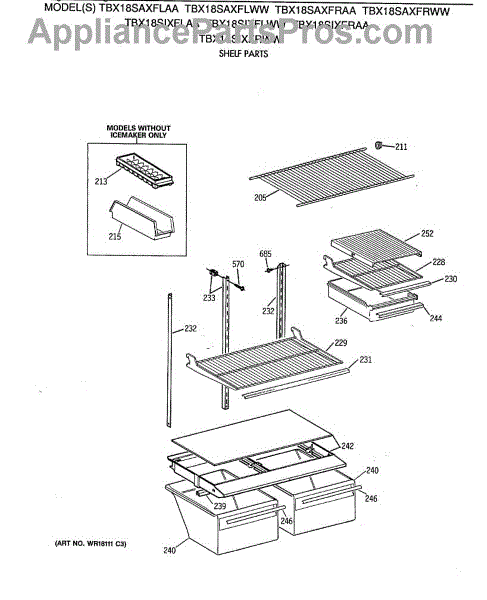 Parts for Ge TBX18SAXFRWW: 04 - Shelf Parts
