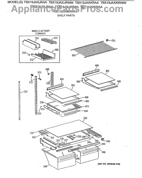 Parts for Ge TBX19JAXJRWW: 04 - Shelf Parts