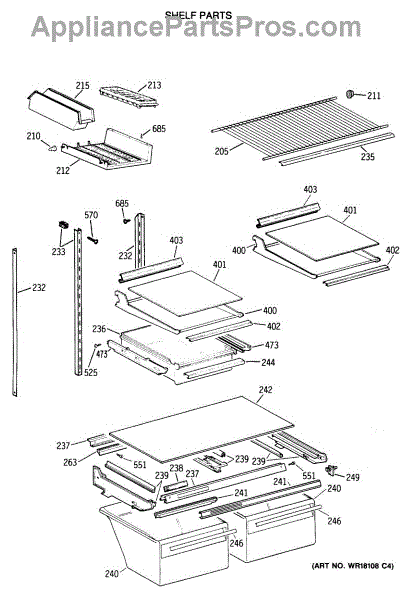 Parts for Ge TBX19MASFRWH: 04 - Shelf Parts