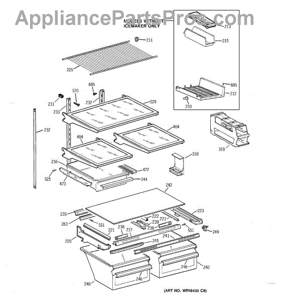 Parts for Ge TBX19QIBARAA: 04 - Shelf Parts