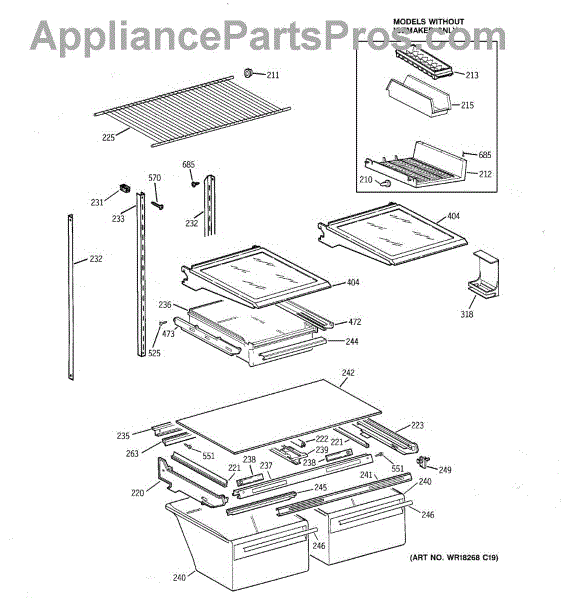 Parts for Ge TBX19ZIBLRAA: 04 - Shelf Parts