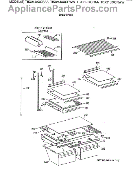 Parts for Ge TBX21JIXCRWW: 04 - Shelf Parts