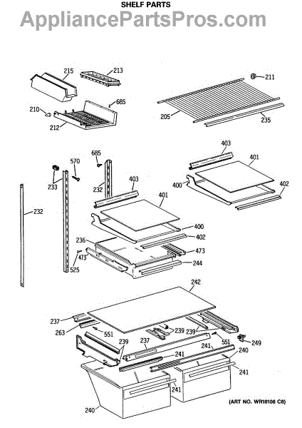 Parts for Ge TBX21MASRRAD: 04 - Shelf Parts