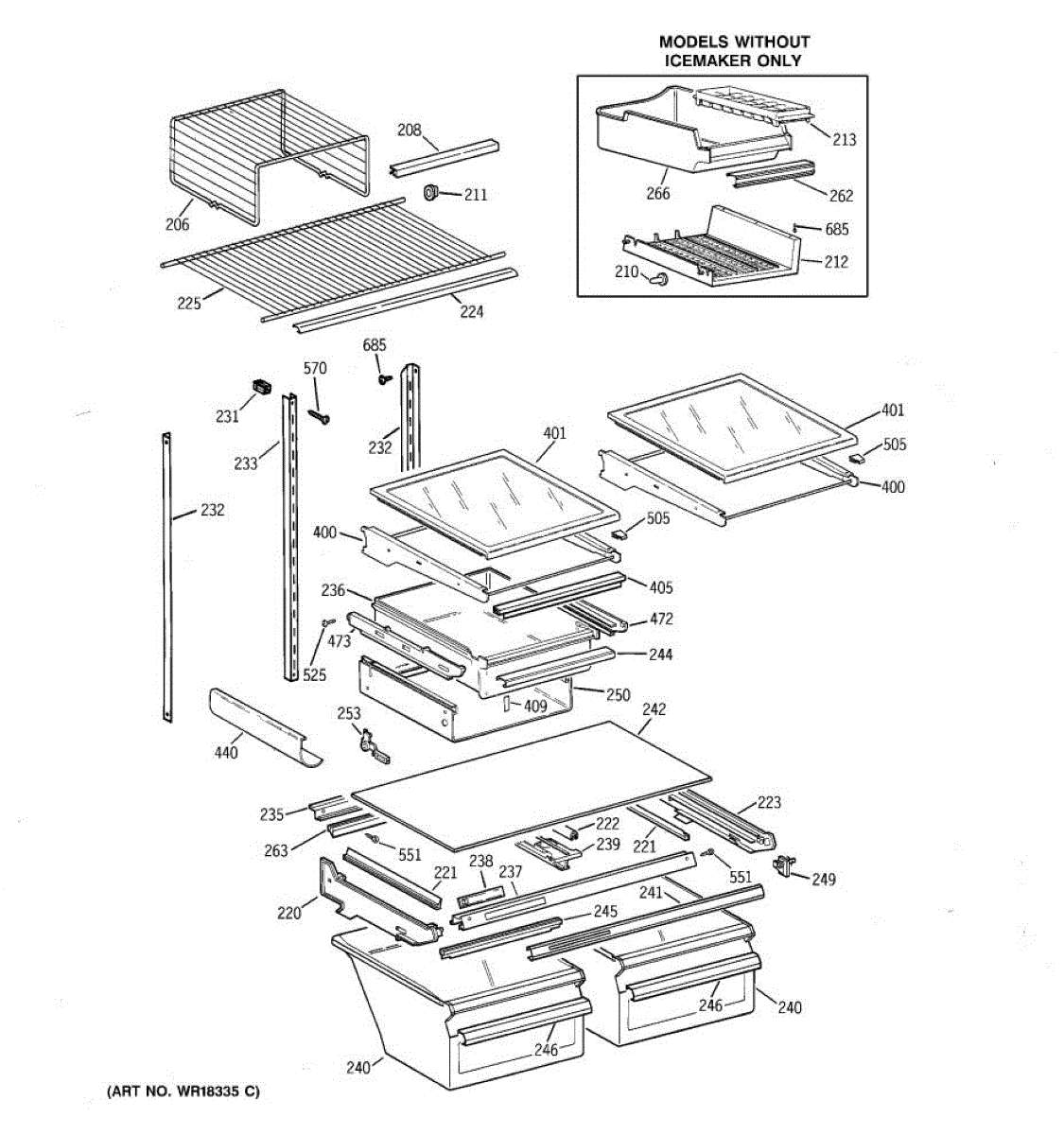 Parts for Ge TBX22PAYERBB: 04 - Shelf Parts