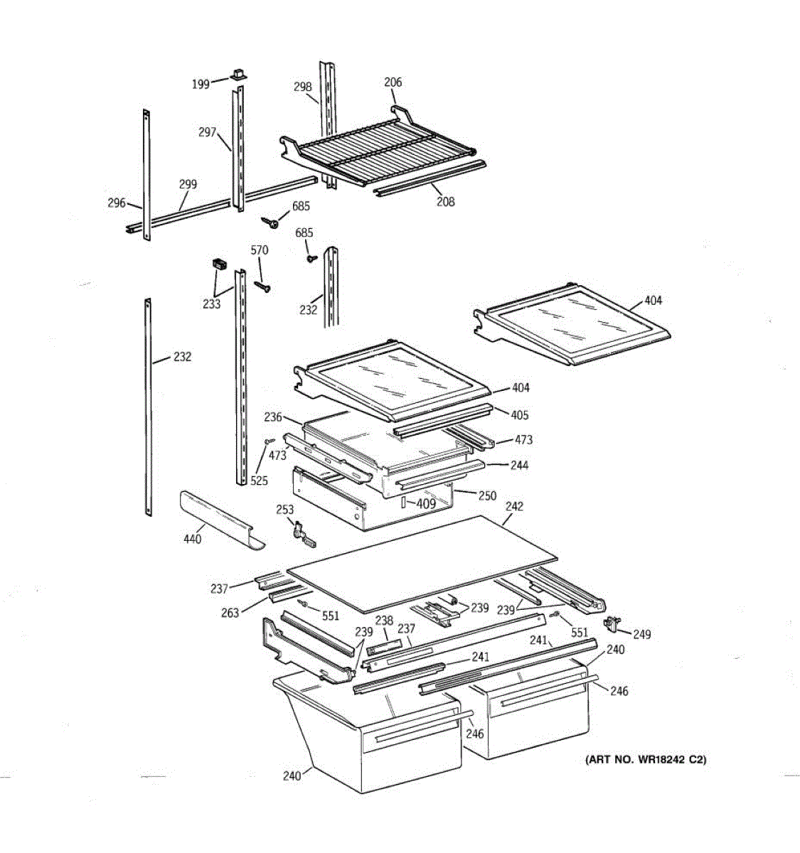 Wire shelf assembly for refrigerator freezer compartment. Replaces damaged, bent, or broken freezer shelves. Installs inside freezer section for storage.