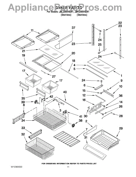 Note: For the left-hand side Pantry Drawer Support, order part number WP12656105.