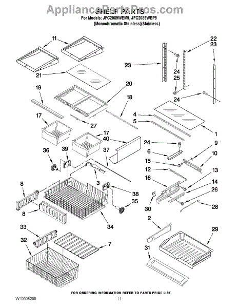 Note: For the left-hand side Pantry Drawer Support, order part number WP12656105.