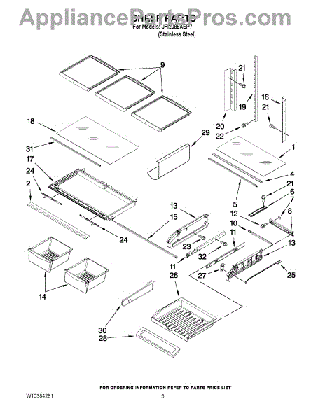 Note: For the left-hand side Pantry Drawer Support, order part number WP12656105.