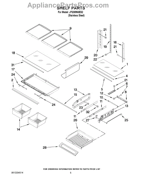Note: For the left-hand side Pantry Drawer Support, order part number WP12656105.