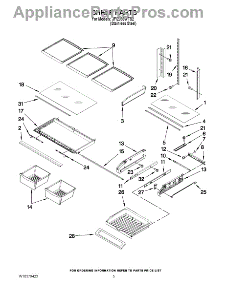 Note: For the left-hand side Pantry Drawer Support, order part number WP12656105.