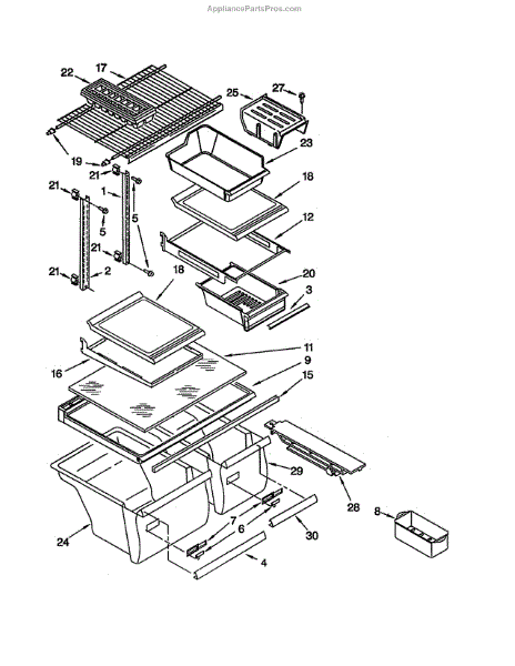 This genuine shelf assembly replaces a damaged or cracked refrigerator cabinet shelf to restore stable storage and keep items organized. It fits original mounting points for a secure, flush installation. What it does: