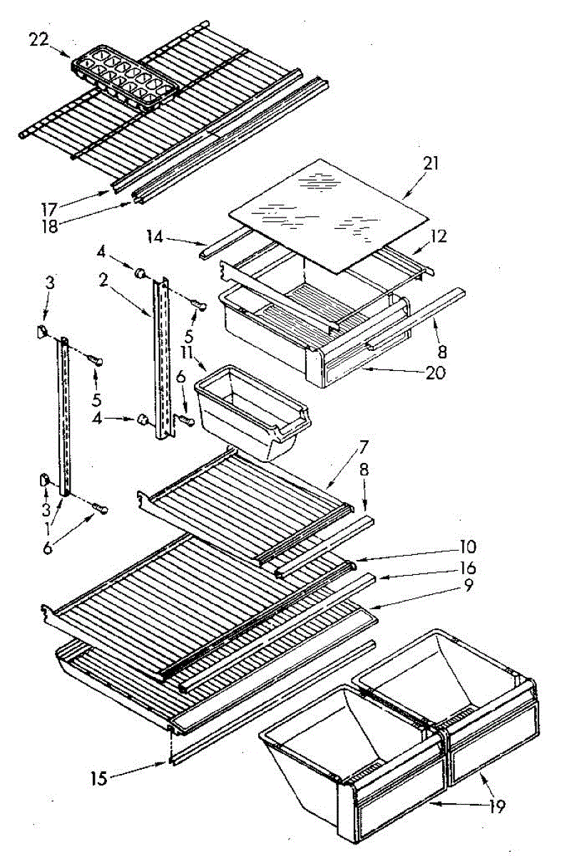 Metal support bar that mounts to the refrigerator liner to hold the crisper cover frame and glass level. Replace if broken, missing, or bent.