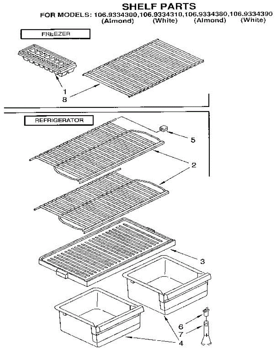 Parts for Kenmore 106.9334310 (1069334310, 106 9334310): Shelf Parts
