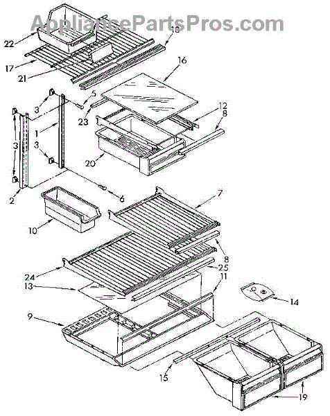 This crisper cover support mounts to the refrigerator liner and holds the crisper cover frame/glass level. Replacing a broken or missing support restores a stable shelf surface and helps the crisper drawers slide and close properly.