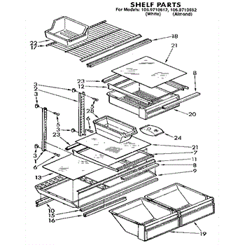 Parts for Kenmore 106.9710612 (1069710612, 106 9710612): Shelf Parts