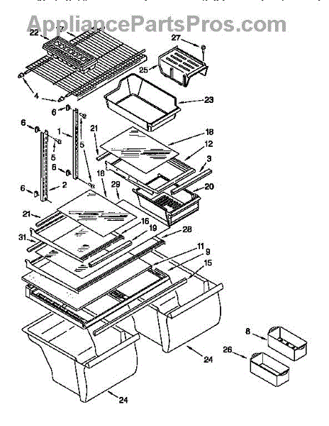 Parts for Kenmore 106.9750513 (1069750513, 106 9750513): Shelf Parts