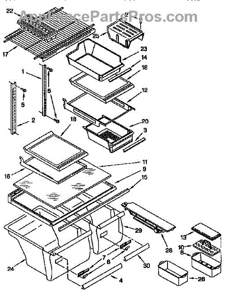 Parts for Kenmore 106.9759722 (1069759722, 106 9759722): Shelf Parts
