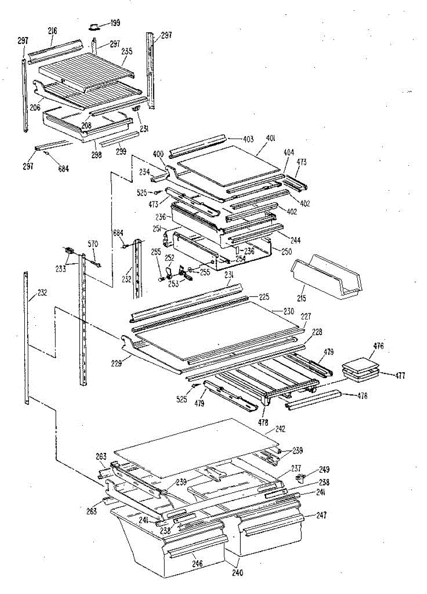Wire shelf assembly for refrigerator freezer compartment. Replaces damaged, bent, or broken freezer shelves. Installs inside freezer section for storage.