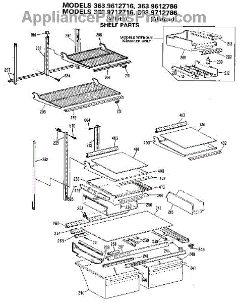 Parts for Kenmore 363.9612716 (3639612716, 363 9612716): Shelf Parts