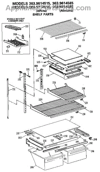 Parts for Kenmore 363.9614515 (3639614515, 363 9614515): Shelf Parts