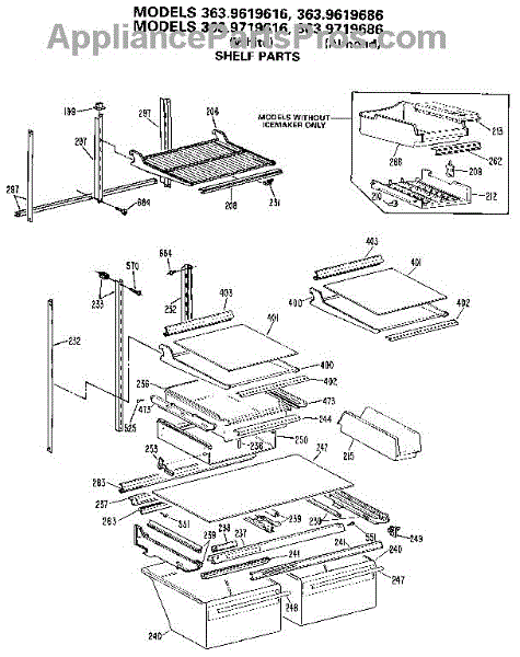 Parts for Kenmore 363.9619686 (3639619686, 363 9619686): Shelf Parts